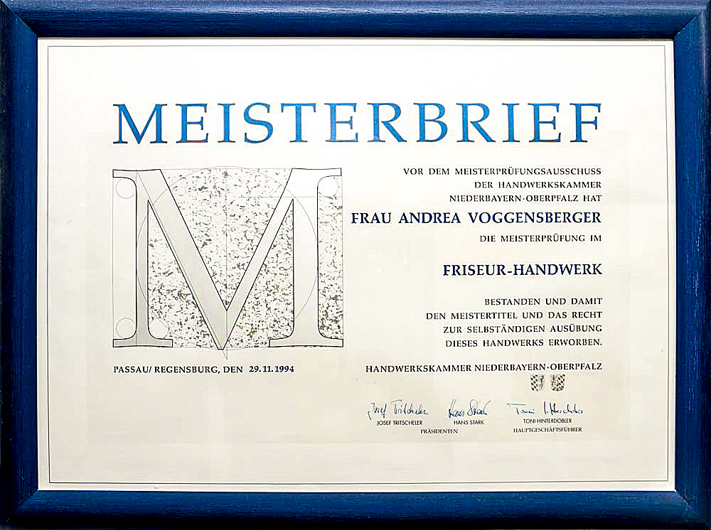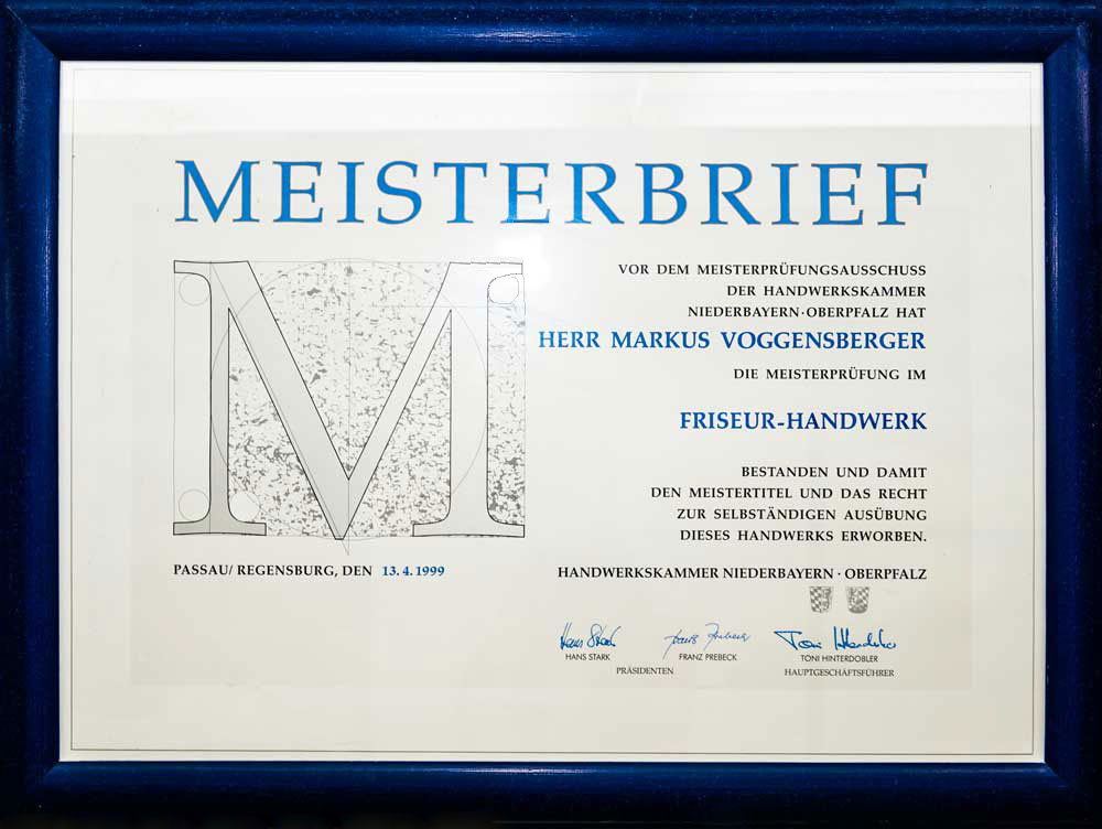 Friseurmeister, ausgeszeichnet mit dem Bayerischen Meisterpreis, Master of Colour, Geschäftsführer
